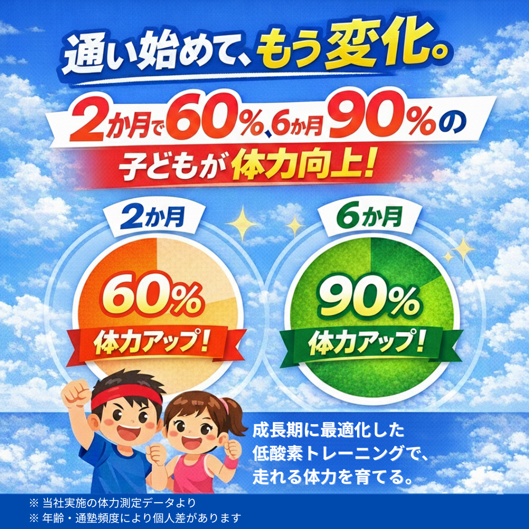 持久力を測る60秒間走において、2か月で平均12mの向上