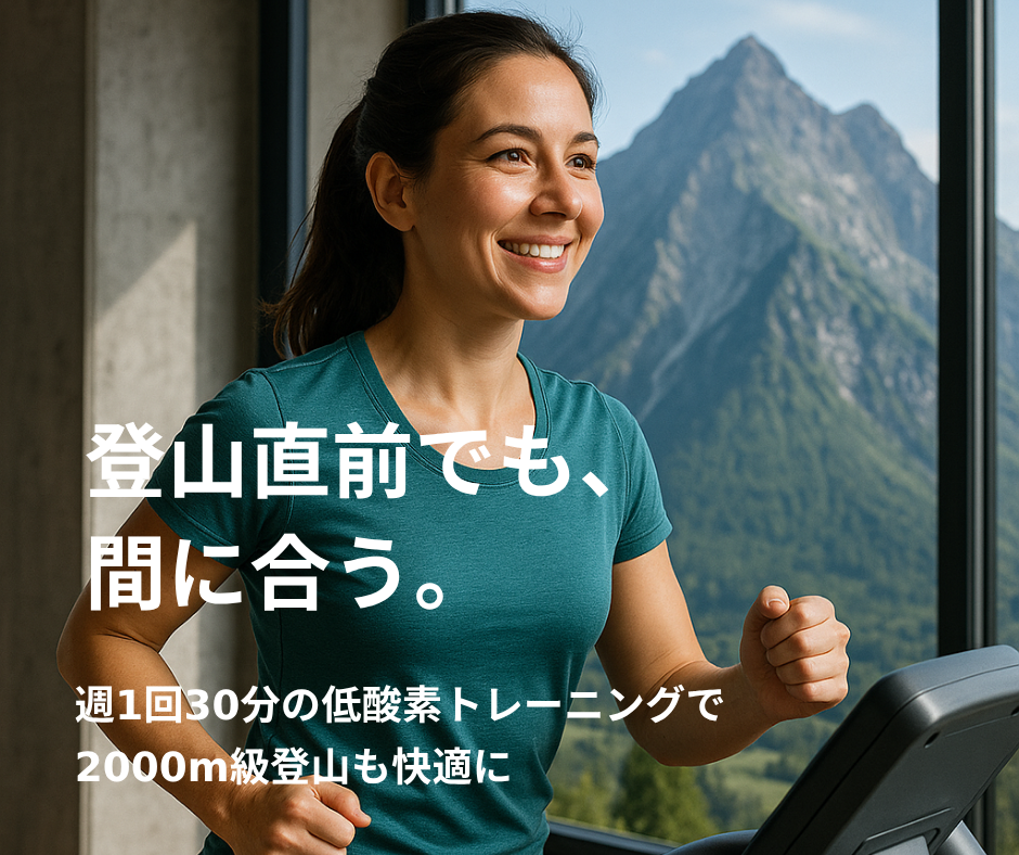 はい、登山直前でも一定の効果は期待できます。特に、高地に慣れる「順化」の準備が不十分な場合、1回でも低酸素環境でのトレーニングを体験することで、呼吸や心拍の反応を事前に確認でき、自信をもって登山に臨めます。
